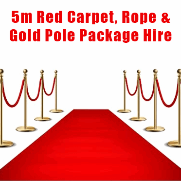 5m Red Carpet, Gold Pole & Rope Hire