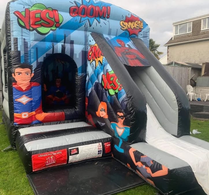 Our Super Hero Slide Combo is a must for your party!, Everyone's favourites are here! Spiderman, Iron Man, Batman, The Incredible Hulk and many more!