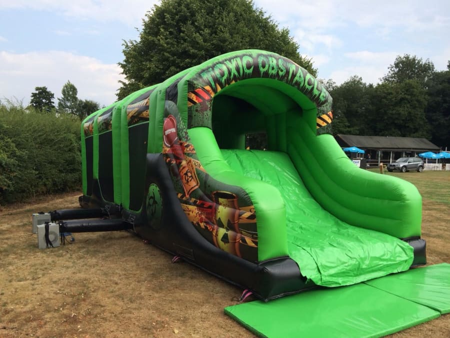 Toxic 2 Piece Obstacle Assault course is made up of Obstacles, Inflatables and a Slide at the end of the course.