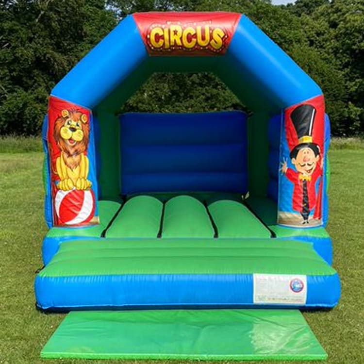 Our NEW Blue & Green Circus Bouncy Castle is great entertainment for all your Ringmasters, Lion Tamers, and Acrobats.