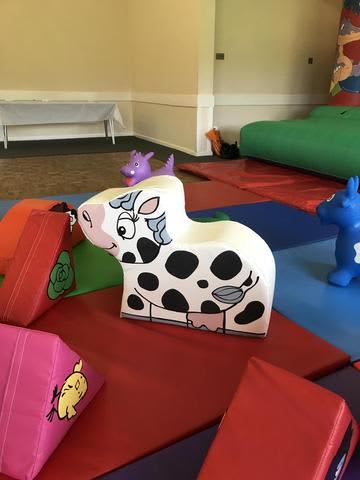 The 12'x12' soft play floor velcro's together to ensure stability and safety and comes with 15 soft play shapes bearing various farm animals. The ball pond also has various farm animals on the sides.