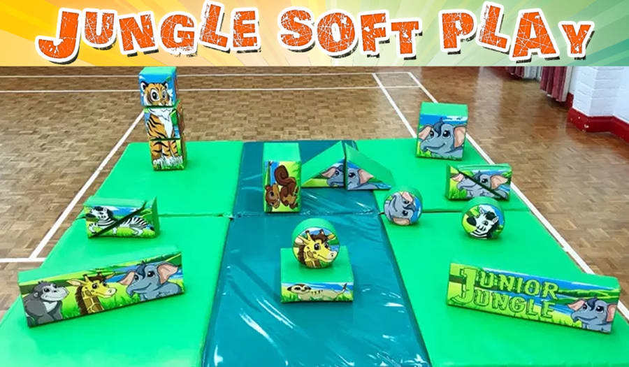 Our Awesome Jungle Soft Play consists of 17 pieces with a wide range of triangles, slopes, squares, steps, puzzle cubes and stepping stones. The soft play will be set up in your chosen location on 6 padded mats for ultimate safety.