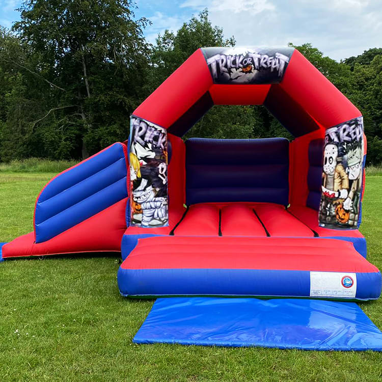 Our Repulsive Red and Bloodsucking Blue Trick or Treat Halloween Bouncy Castle and Slide Combo will have all your Skeletons shaking.