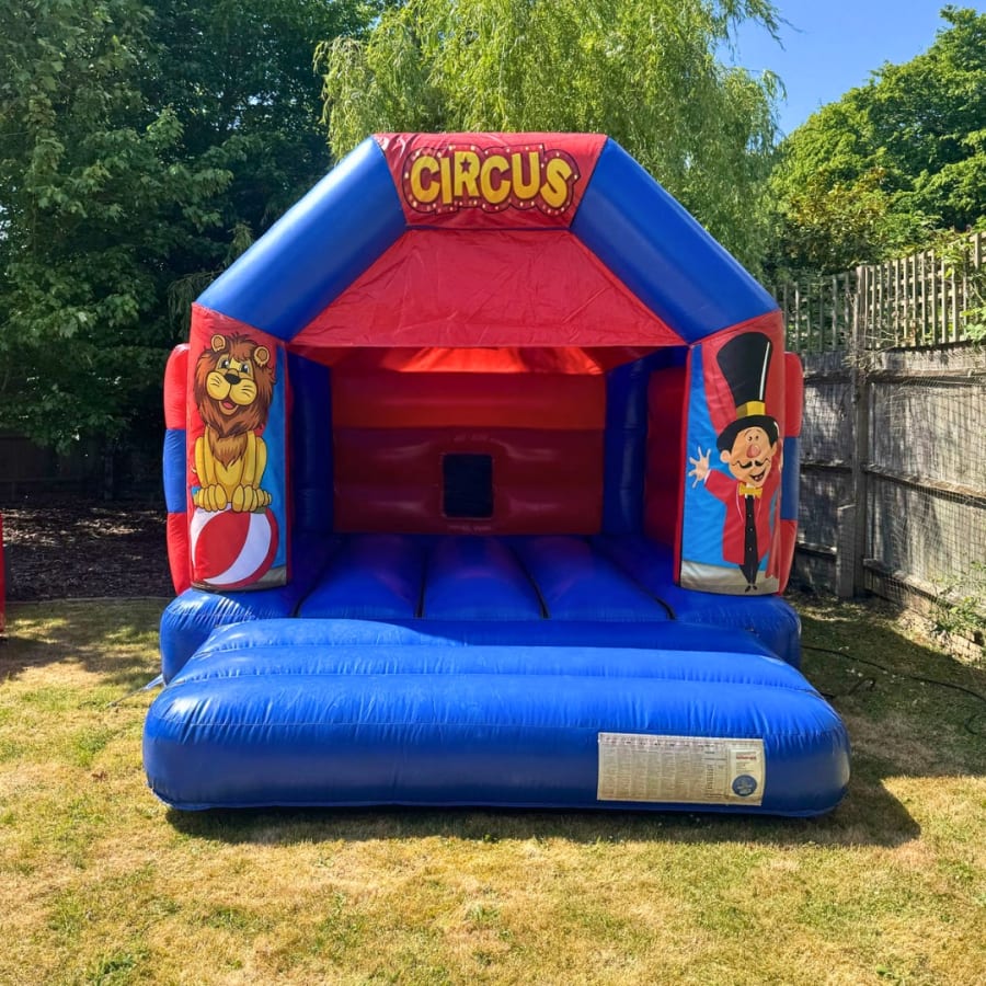 Our NEW Blue & Red Circus Bouncy Castle is great entertainment for all your Ringmasters, Lion Tamers, and Little Acrobats.