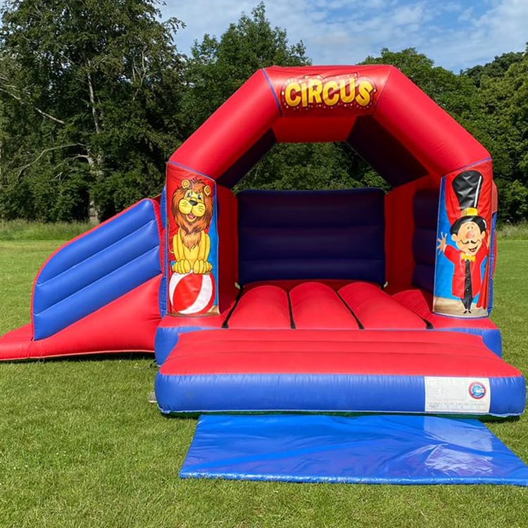 Our NEW Red & Blue Circus Bouncy Castle and Slide Combo is great entertainment for all your Ringmasters, Lion Tamers, and Little Acrobats.