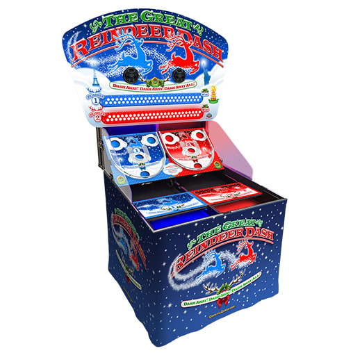 Reindeer Dash racing game with Digital Audio is the perfect way to add excitement to any event. Reindeer Dash will draw a crowd with its head-to-head competition. You can earn points by leading your team of Reindeer to victory! You can score points by bouncing your balls into the scoring slots on the bounce pad. There are four different slots in this game, which makes it fast paced and a lot of fun.