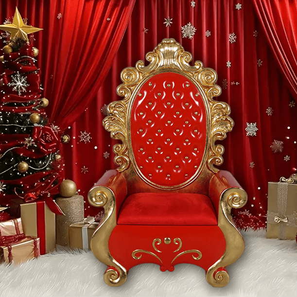 Make Your Festive Celebrations Unforgettable with Our Regal Red & Gold Santa Throne