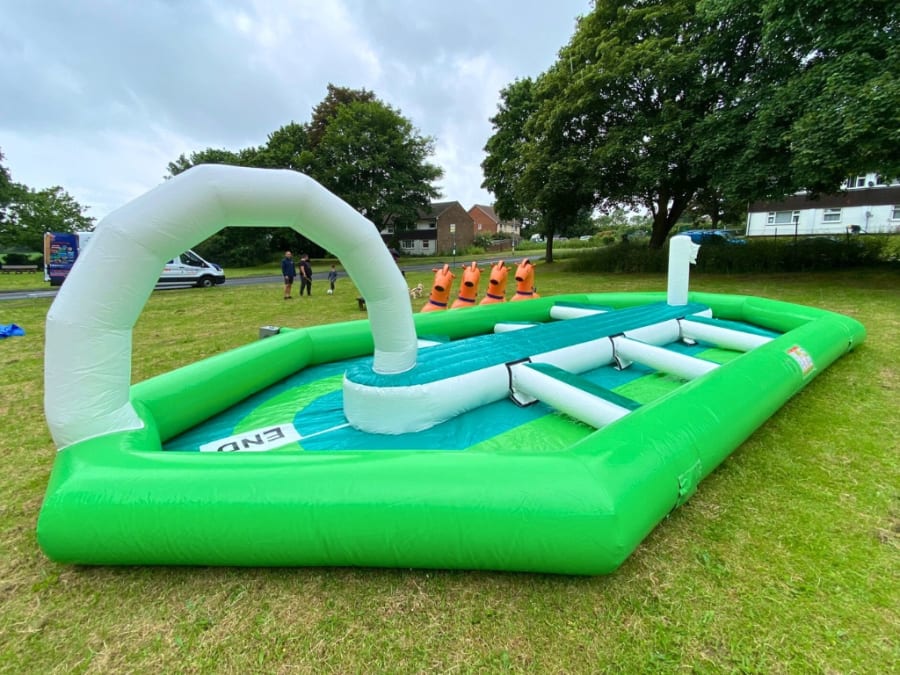 Step up to the challenge and compete against your friends, colleagues, or family members in a thrilling horse racing derby. With our inflatable track, you can recreate the excitement of a horse race at any event venue.