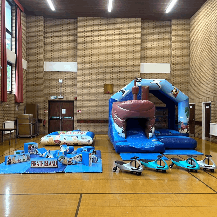 Our Pirate Soft Play consists of a lovely range of soft rockers, triangles, slopes, squares, steps, puzzle cubes and stepping stones. The soft play will be set up in your chosen location on 6 padded mats for ultimate safety.
