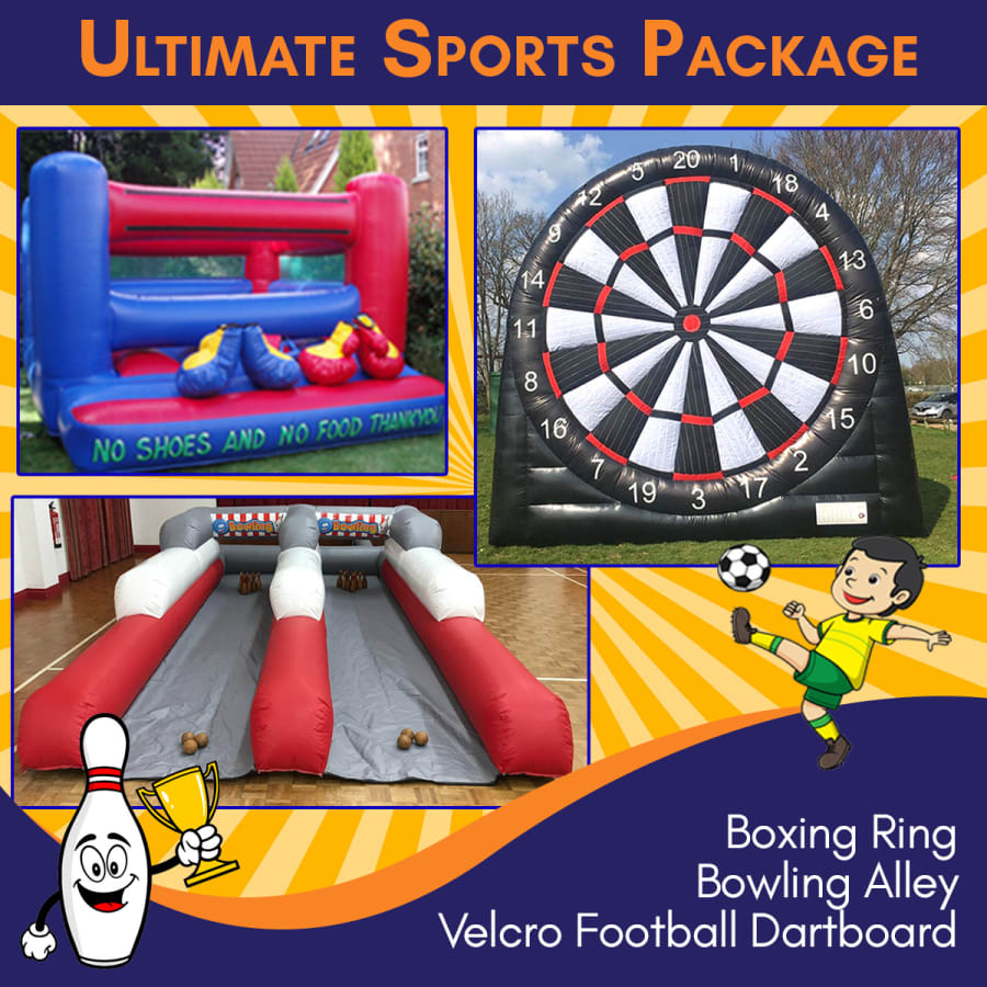 The Ultimate Sports Package consists of 3 fun inflatables: