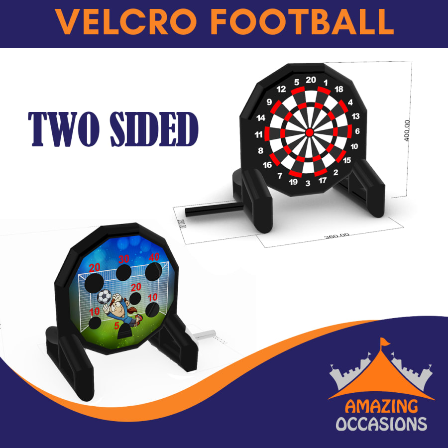 Our giant Velcro Football Dartboard is a firm favourite of children and adults alike. Perfect for your sports party! It stands at 17 feet high so you'll need a powerful kick to reach the high numbers and win the match. Stand at the Ockey, take aim and away you go!