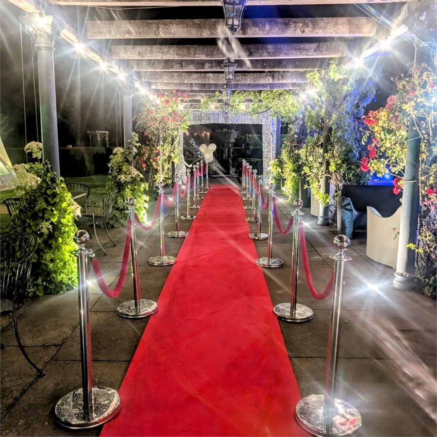 Make a statement VIP entrance for yourself and your guests at any event with our luxurious Red Carpet, Silver rope & Barriers package.