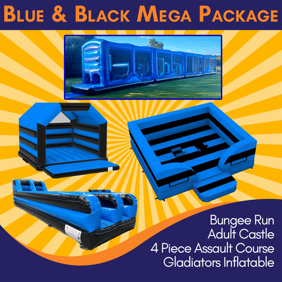 Our incredible Inflatable Blue & Black Package is perfect for all yourt events! This amazing package includes a range of eye catching inflatables, guaranteed to bring fun and excitement to any occasion.