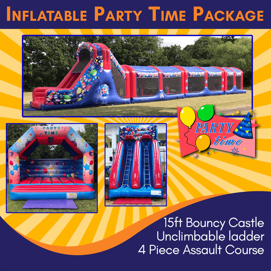 Make your event unforgettable with our Party Time Inflatable Package. Book now and get ready to have a blast!